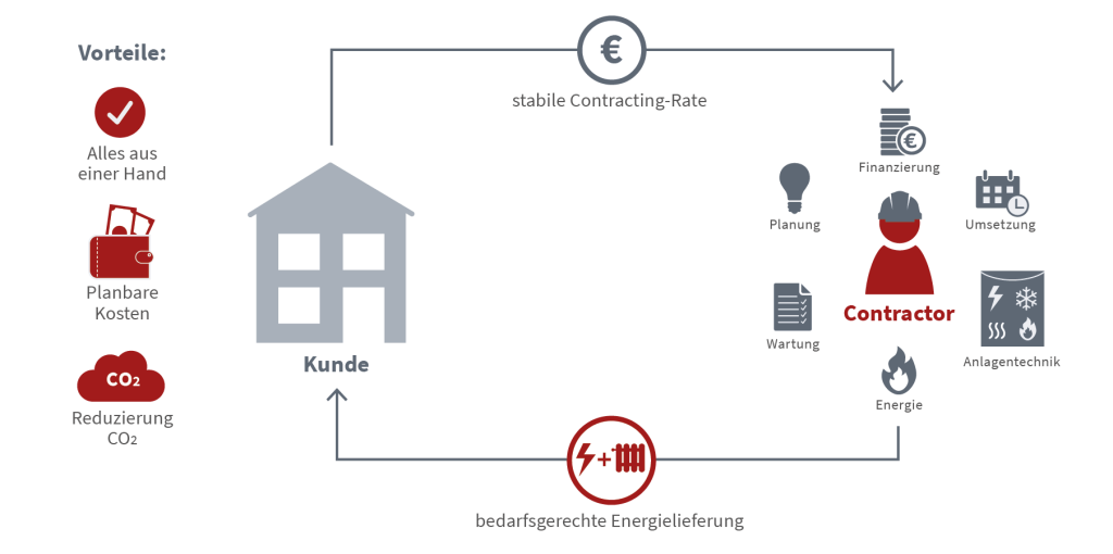 • Die Leistungen des Contracting-Anbieters sind unter Umständen steuerlich absetzbar. Genauere Informationen hierzu erhalten Sie beim Steuerberater Ihres Unternehmens.