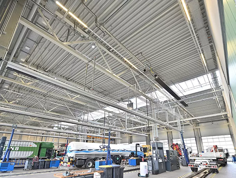 Hallenheizung für Lkw-Werkstätten