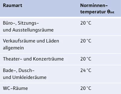Für die verschiedenen Nutzungen gibt es grobe personen- und tätigkeitsbezogene Temperaturrichtwerte: