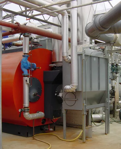 MW-Erdgaskessel mit nachgeschaltetem Abgaskondensator (Quelle: Dipl.-Ing. Otto Domke)