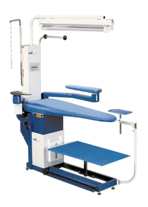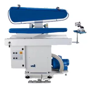 Bügeltische sind aus dem Haushaltsgebrauch bekannt, unterliegen aber im gewerblichen und industriellen Bereich besonderen Anforderungen und weisen unterschiedlichste Ausstattungsvarianten auf. Der für das manuelle Bügeln von Kleidungsstücken vorgesehene Tisch verfügt meistens über Absaug- und Blasfunktion. Der Dampf für das Bügeleisen wird entweder über den zentralen Dampferzeuger oder aber über separate kleine, elektrisch beheizte Dampferzeuger bereitgestellt.